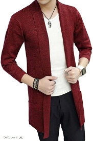 Meryueru メリュエル ソリッド カラー スマート デザイン ミドル ニット カーディガン メンズ ワインレッド S クイックスピード ヤマダモール店